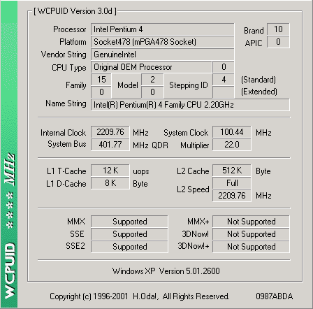 Intel Pentium 4 2.2GHz Intel Pentium 4 2.0AGHz Intel Pentium 4 2.0GHz |