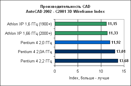 2D графический индекс завершает тесты AutoCAD 2002. Новое ядро Northwood улучшает производительность относительно Willamette на 7%.