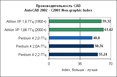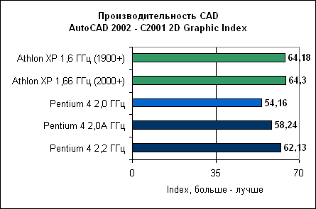 И хотя для теста мы использовали средненькую по меркам AutoCAD карту (GeForce3 Ti500), нам наиболее важно различие между процессорами.
