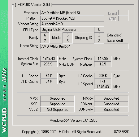 | SiSoft Sandra 2001 | Professional Version 2001.3.7.50 |
