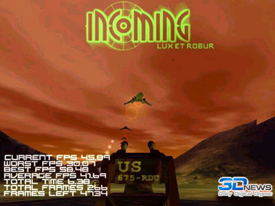 График показывает равенство в скорости (только в низком разрешении есть заметные различия). Однако, справедливости ради, отмечу, что в 32 битном цвете RivaTNT потеряла в скорости до 30%, и если вы играете в Incoming исключительно в 32 битном цвете, то Rage128 – для вас.