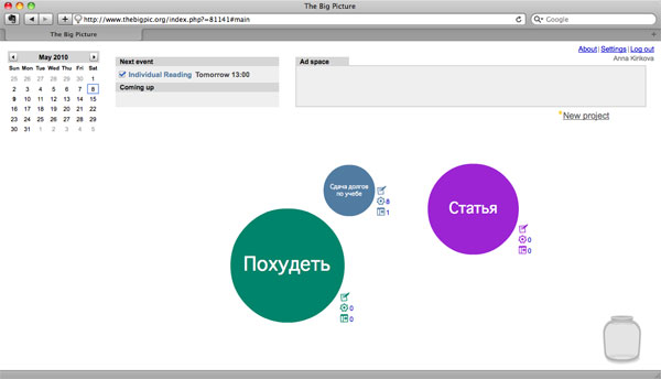Сервис с названием TheBigPic, которое больше подошло бы какому-нибудь фотохостингу, позволяет быстро и удобно распланировать ваши дела. Для начала нужно зарегистрироваться на сайте и посмотреть вступительный видеоролик, в котором будет подробно рассказано как пользоваться ресурсом. Несмотря на то, что ролик (а по сути — скринкаст) записан на английском языке, все понятно и выглядит весьма удобным.