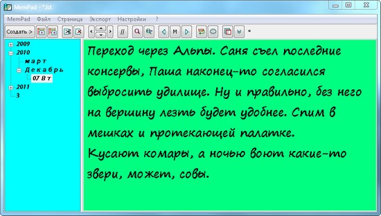 По внешнему виду Advanced Diary – это обычный ежедневник, позволяющий быстро выбирать дату записи при помощи аккуратного календаря, редактировать текст с использованием возможностей встроенного редактора и перемещаться по дневнику при помощи древовидного представления категорий. Мощь программы скрыта в возможностях работы с базами данных. Так, используя Advanced Diary, можно создавать несколько независимых баз данных, доступ к каждой из которых может быть защищен паролем. Между базами данных можно быстро переключаться и даже работать с несколькими одновременно. Для повышения уровня безопасности базы данных не только защищаются паролем, но и шифруются. Много внимания в программе уделено возможностям печати дневниковых записей. Так, можно выбрать граничные даты записей, которые требуется распечатать, или категории, к которым они относятся. При этом записи будут вставлены в один из выбранных шаблонов, где кроме самого текста также присутствуют верхние и нижние колонтитулы. По умолчанию в Advanced Diary есть несколько шаблонов, и любой из них можно редактировать по своему усмотрению. Документ с записями, подготовленный к печати, можно экспортировать в файлы RTF или HTML с сохранением форматирования. Несмотря на то, что возможности текстового редактора мало чем отличаются от средств, предлагаемых в других подобных решениях, есть и некоторые интересные находки. Например, можно нажатием одной кнопки вставить в запись текущую дату или дату и время, установить ссылку на web-страницу или файл, хранящийся на жестком диске или в локальной сети. ![]() Отметим также достаточно широкие возможности настройки внешнего вида приложения. Это и смена цветовой схемы, и переключение между стандартным представлением команд и стилем Ribbon, и возможность изменения расположения основных элементов окна программы – календаря, области для ввода текста, панели навигации. ⇡#MemPad 3.41