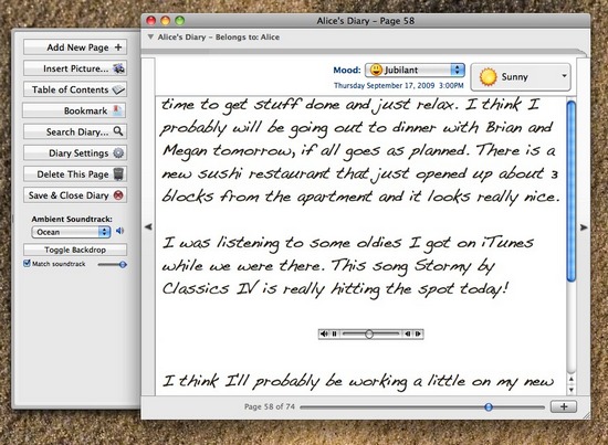 Обычно мы не включаем в обзор программного обеспечения приложения, написанные для платформы Mac OS X, однаков данном случае хотелось бы сделать исключение. Дело в том, что электронный дневник MiLife как нельзя лучше вписывается в квинтэссенцию «яблочного» ПО и поэтому рассчитан на определенного пользователя. Поскольку стоимость продукции Apple несоизмеримо выше расценок на компьютеры, работающие под управлением Windows, пользователи, которые отдают предпочтение детищу Стива Джобса, руководствуются, как правило, несколькими доводами. Во-первых, компьютер на Mac OS X – это стабильная работа и практически полное отсутствие вирусной угрозы. Во-вторых, компьютер с логотипом Apple – это стильно и красиво. Программа MiLife имеет четко обозначенную аудиторию, которая руководствуется последним аргументом. Такие пользователи – любители всего гламурного. Этот дневник действительно выглядит привлекательно, вдобавок он наделен массой разных функций. Причем в арсенале программы есть и действительно полезные инструменты, и откровенные излишества в виде всевозможных интерфейсных «украшательств», призванных произвести впечатление на неискушенного пользователя. Но вот парадокс – если в Windows за каждое дополнительное удобство интерфейса приходится расплачиваться снижением производительности, в операционной системе Mac OS X подобные излишества часто не только «сходят с рук» пользователю, но и заставляют почувствовать удобство от того, что все работает без заминок и при этом имеет красивый вид. Все вышесказанное относится и к электронному дневнику MiLife. Он имеет очень привлекательный интерфейс, но при этом работает быстро и стабильно. Внешний вид программы стилизован под настоящий дневник, а при добавлении новых записей можно даже услышать, как поскрипывает грифель карандаша. В программе встроен «анализатор настроения и погоды», с помощью которого можно проследить статистику душевного состояния владельца дневника, а также погоды (если, конечно, при добавлении каждой новой записи он отмечал свое настроение и указывал, идет ли дождь). Чтобы пользователь мог полностью расслабиться, в MiLife можно включить звуки природы, например, монотонный шум дождя или успокаивающий гул океанского прибоя. ![]() В программе можно выполнять экспорт отдельных страниц или всего дневника в формат RTFD с сохранением стилей и вложенных изображений. Также можно сохранять содержимое в виде файла HTML или документа, совместимого с Microsoft Word. MiLife может создавать и резервную копию дневника, используя при этом сжатие данных в формат ZIP. Дневник может шифровать данные - для этой цели используется стойкий алгоритм AES-128. В дневнике присутствует особый режим просмотра содержимого - Toggle Backdrop. При использовании этой функциипрограмма затеняет все области рабочего стола, концентрируя внимание пользователя на тексте дневника. Очень похожая функция есть в «яблочном» браузере Safari. ⇡#ЗаключениеНесмотря на то, что дневник – вещь сугубо личная, психологи утверждают, что когда человек заводит его, он подсознательно желает, чтобы его мысли, доверенные дневнику, кто-нибудь разделил. Это подтверждается огромной популярностью онлайновых дневников, которые можно заводить практически на любом развлекательном портале или в социальной сети. Но оффлайновый дневник имеет одно большое преимущество перед о