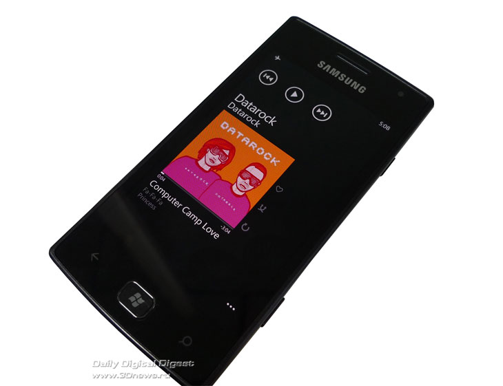 Отступлений от аппаратных требований, предъявляемых Microsoft к устройствам второй волны, никаких — даже скучно. ЦП Qualcomm Snapdragon 8255 с частотой 1,4 ГГц, 512 Мбайт оперативной памяти, жалкие 8 гигабайт нерасширяемой набортной памяти... Камеры есть и спереди, и сзади, 5 Мп (с довольно средним качеством съемки) и неприличная VGA. Последней, впрочем, только предстоит доказать свою полезность — великая интеграция Windows Phone и Skype еще впереди. Емкость батареи стандартна — 1500 мА*ч, насколько долго она продержится в паре с дисплеем Super AMOLED и при задранной частоте процессора — вопрос в отсутствие нормального экземпляра с открытым всем SIM-картам 3G чисто теоретический.
