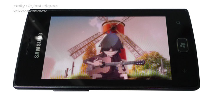 Самое главное — это определенно экран. Samsung тут терроризирует конкурентов Super AMOLED’ом, и правильно делает — экран что надо! Размеры многим после Android’ов покажутся небольшими, но справиться с кириллической клавиатурой вполне реально и в портретной ориентации. Цвета типичны для этого типа экранов — ярко, сочно, тепло. Совершенно нереалистично, ну а кому нужна жизнь без прикрас? Кстати, еще одно очко в пользу OLED-экрана в телефонах на базе нынешней версии WP7 — трагичный черный фон, устанавливаемый по умолчанию, приобретает хоть какой-то практический смысл.