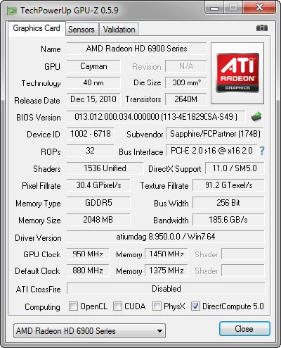 Обе видеокарты оснащены оригинальными системами охлаждения с более высокой эффективностью и низким уровнем шума, чем у соответствующих им эталонных видеокарт: ![]() ![]() Заметим, что Sapphire Dual Fan (или Dual X) и ASUS DirectCU II являются одними из лучших оригинальных систем охлаждения видеокарт, и именно в сравнении с ними и была проверена эффективность Ice Hammer IH-900B. Для повышения тепловыделения видеокарт и усложнения задачи кулеру, мы повысили частоты графических процессоров и видеопамяти. На силовых элементах были установлены штатные радиаторы этих видеокарт. Алюминиевые радиаторы из комплекта Ice Hammer не использовались. Программы, применявшиеся при тестировании, устанавливались под операционной системой Microsoft Windows 7 Ultimate x64 SP1. Использовались библиотеки DirectX End-User Runtimes (ноябрь 2010-го), а также драйверы видеокарт AMD Catalyst 12.2 beta и NVIDIA GeForce 296.10. Прогрев видеокарт был выполнен пятью циклами теста игры Aliens vs Predator в разрешении 2560х1600 с максимальными настройками качества графики, анизотропной фильтрацией уровня 16х, но без использования сглаживания, что позволит сильнее прогреть именно графические процессоры: Данный тест при заданных нами настройках качества даже мощные видеокарты нагружает весьма сильно и при этом не может привести к выходу их из строя, в отличие от честно предупреждающего об этом FurMark, от полноценного использования которого в этом тестировании мы отказались. Для мониторинга частот и температур видеокарт использовались утилита MSI Afterburner версии 2.2.0 Beta 15, а также программа GPU-Z версии 0.6.0: Тестирование в каждом режиме проводилось не менее двух раз, а период стабилизации температуры между прогонами составлял 10-12 минут. Комнатная температура контролировалась установленным рядом с открытым системным блоком электронным термометром с точностью измерений 0,1 °C и возможностью мониторинга изменения температуры в помещении за последние 6 часов. Во время тестирования комнатная температура колебалась в диапазоне 25,6-26,0 °С. Скорость вращения вентилятора Ice Hammer регулировалась с помощью специального контроллера, а на видеокарте Sapphire ещё и с помощью PWM-управления при подключении напрямую к разъёму видеокарты. На ASUS разъём иного типа — подключить к нему кабель Ice Hammer невозможно.