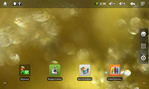 Аппаратных клавиш регулировки громкости нет. Вместо этого они вынесены в область уведомления Android, где, впрочем, продублированы и три основные кнопки «Домой», «Назад» и «Меню». Сделано это с разумным расчётом на то, что основное управление читалкой будет осуществляться с помощью сенсорного экрана.
