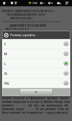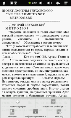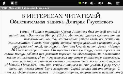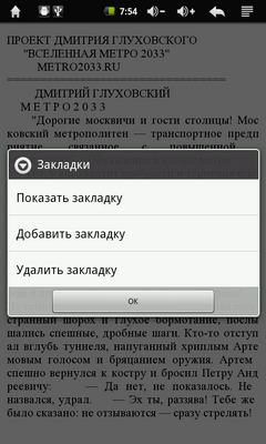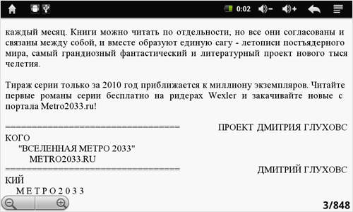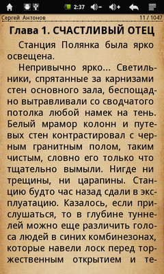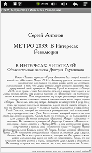 Приложение хоть и не блещет шикарным набором функций, но смотрится довольно симпатично. К тому же оно открывает доступ к книжному магазину компании Wexler. Ну и по традиции в ридер уже залиты книги из серии «Метро 2033».
