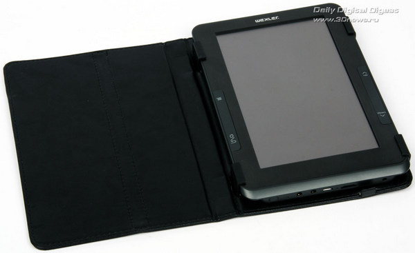 Ридер Wexler.Book T7006 упакован в хорошо оформленную коробку из толстого картона, на лицевую часть которой нанесено изображение читалки, а с задней стороны приведены краткие характеристики устройства. Сама читалка покоится меж двух прослоек из вспененного пластика. Она сразу же облачена в комплектный чехол, в котором «сидит» довольно крепко.