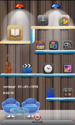 В Wexler.Book T7006 есть сразу две оболочки. Одна фирменная, довольно симпатичная, а вторая очень напоминает ADW Launcher. Между ними можно в любой момент переключиться. В устройстве также имеется G-сенсор и функция автоповорота экрана.