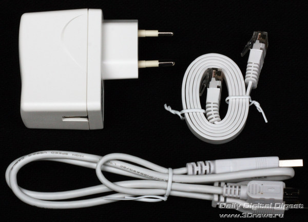 Кубическая коробка TP-Link TL-MR3020 под стать самому роутеру — маленькая и опрятная, с фотографией устройства и кратким перечислением ключевых возможностей. Много в такую коробочку не спрячешь, и действительно — в комплекте идёт необходимый минимум. А именно: блок питания с USB-портом в качестве выхода и мощностью всего-то в 5 Вт, кабель питания в виде шнурка с mini-USB на одном конце и парой обычных USB на другом, а также восьмижильный плоский патч-корд. Всё это — белого цвета, так что при частых поездках наверняка быстро утратит свою белизну. Естественно, прилагается к роутеру и краткая инструкция, и Mini-CD с электронной версией руководства, и даже бумажная копия лицензии GPLv2.
