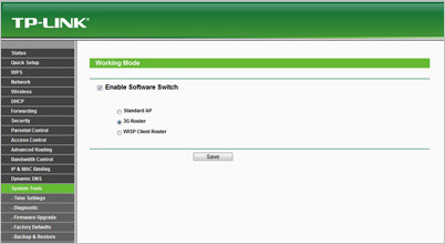 В плане функциональности TP-Link TL-MR3020 очень похож на уже протестированную модель TP-Link TL-MR3420. Мы не будем повторяться и заново описывать все доступные возможности — обратитесь к соответствующему разделу обзора TL-MR3420. Если вкратце, то новинка поддерживает Wi-Fi 802.11b/g/n с фильтрацией по MAC-адресам и имеет DHCP-сервер с привязкой IP/MAC, а также брандмауэр с гибко настраиваемой фильтрацией (IP, MAC, порт, протоколы TCP/UDP/ICMP) и расписанием работы правил. Не забыты и DDNS-клиент (DynDNS, No-IP, Comexe), проброс портов и поддержка DMZ/UPnP, а также система родительского контроля. Для WAN-подключения поддерживаются протоколы PPPoE, PPTP, L2TP и статическая маршрутизация. Также имеется контроль за шириной канала и сбор статистики потребления трафика.