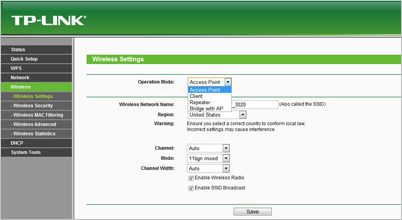 Некоторые отличия всё же есть. Например, менять режим работы можно не только аппаратным переключателем, но в веб-интерфейсе. В зависимости от выбранного режима меняется и поведение Ethernet-порта, а также становятся доступными некоторые настройки. В режиме AP роутер может выступать не только точкой доступа (LAN → WLAN), но клиентом/мостом с точкой доступа (WLAN → LAN), а также в роли повторителя Wi-Fi. В этом режиме недоступны VPN-подключения к Сети, но для клиентов встроенный DHCP-сервер можно включить.