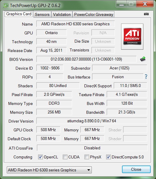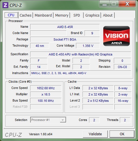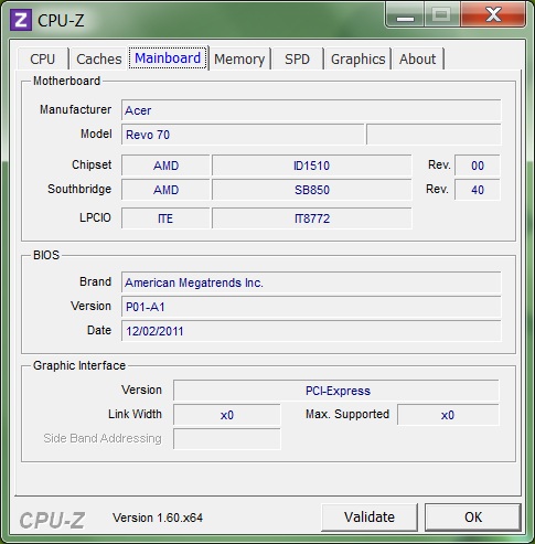 С такими характеристиками Acer Revo RL70 подходит в основном для офисных и мультимедийных задач. Двухъядерного гибридного процессора AMD Fusion E-450 с тактовой частотой 1,65 ГГц и 2 Гбайт оперативной памяти хватит для более-менее комфортного веб-серфинга, работы программ из пакета Microsoft Office Suites и проигрывания видео высокой четкости. Из-за далеко не самой топовой видеокарты AMD Radeon HD 6320 поиграть в современные ресурсотребовательные игрушки вряд ли получится, впрочем, на это никто и не рассчитывал. ![]() ![]() Информация о процессоре ![]() Информация о чипсете ![]() Информация об оперативной памяти ![]() Как уже было отмечено, ОЗУ в Acer Revo RL70 — 2 Гбайт. При желании, можно добавить еще два — поддерживается обычная память SO-DIMM. Реальная тактовая частота HDDR3-1333-модуля составляет 667 МГц. Модуль двухгигабайтной оперативной памяти HDDR3-1333, установленный в Acer Revo RL70 ![]() Информация о видеокарте Новый неттоп от Acer имеет встроенную графическую карту AMD Radeon HD 6320, которую производители довольно часто ставят в нетбуки. Если сравнивать HD 6320 с предшественником, 6310, можно отметить, что первая имеет увеличенную максимальную тактовую частоту при автоматическом разгоне (600 МГц при использовании режима Turbo Core). Решение бюджетное, но для неттопа — вполне подходящее. Установка более навороченной видеокарты неминуемо повлекла бы за собой увеличение стоимости устройства, а это Acer совсем не на руку. Нельзя не отметить, что 3D-производительность HD 6320 совсем немногим лучше, чем у 6310, то есть владелец Revo RL70 сможет насладиться только старенькими играми, системные требования которых совсем не велики. Жесткий диск Western Digital WD64-00BPVT-22HXZT3 на 640 Гбайт, установленный в Acer Revo RL70 Устройством хранения информации является единственный 2,5-дюймовый жесткий диск компании Western Digital, модель WD64-00BPVT-22HXZT3 на 640 Гбайт. Как уже было отмечено вначале, оптический привод у Acer Revo RL70 отсутствует, зато неттоп без проблем и подключения дополнительных внешних устройств может читать карточки памяти формата SD, MMC, xD и Memory Stick. Коммуникаций у мини-ПК не так много, как хотелось бы. Отсутствует не такой уж новый интерфейс USB 3.0, беспроводной технологии Bluetooth у новинки тоже нет, как нет и eSATA. Зато есть целых шесть портов USB 2.0, HDMI для подключения к ТВ-панели и оптический S/P-DIF-аудиовыход. Также модель Revo RL70 оснащена гигабитным Ethernet-адаптером и Wi-Fi-модулем 802.11 b/g/n. Внутреннее строение Acer Revo RL70 Сборка мини-компьютера не вызывает нареканий. Длины кабелей подобраны весьма аккуратно и точно, да и пайка качественная. Как снаружи, так и изнутри Acer Revo RL70 очень хорош. Система охлаждения Acer Revo RL70 ⇡#ТестированиеЧтобы протестировать возможности Acre Revo RL70, мы решили обратиться к завоевавшим народное доверие и любовь синтетическим тестам от Futuremark: PC Mark 7 и 3D Mark Vantage. На основании результатов этих бенчмарков мы сможем сделать выводы о производительности машины. Однако перед глобальными тестами следует произвести оценку производительности Windows, на которую, судя по отзывам, читатели обращают внимание довольно часто. Оценка производительности Acer Revo RL70 по версии Windows Тест наглядно демонстрирует, что слабым местом неттопа является процессор. Это действительно так: даже в обычных несложных повседневных задачах мини-ПК так и норовит притормозить то тут, то там. И пусть подобные лаги кратковременны, да и появляются не слишком часто, к концу рабочего дня они могут н
