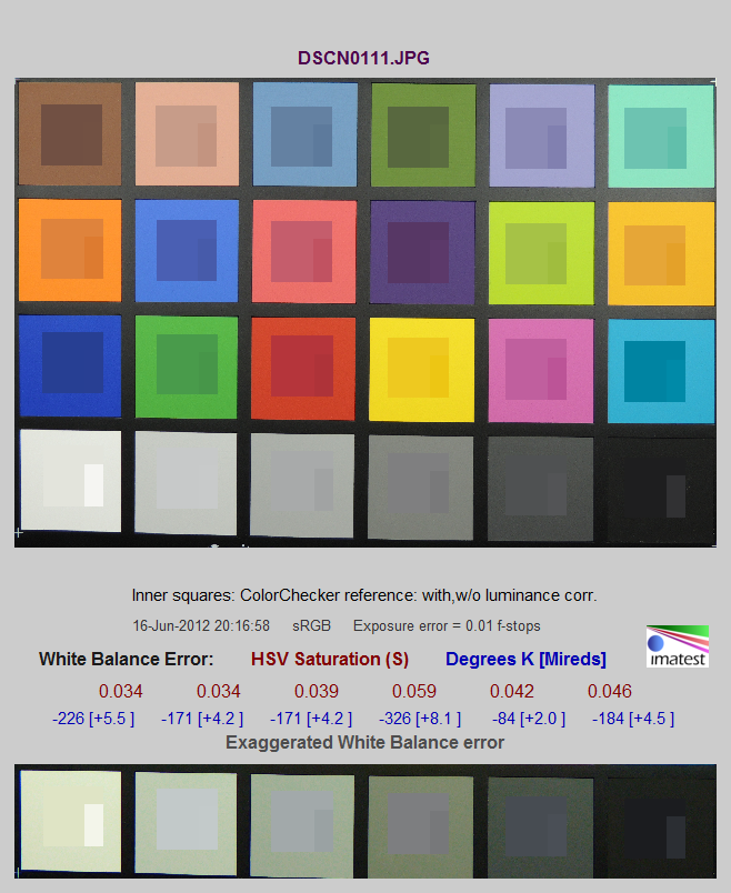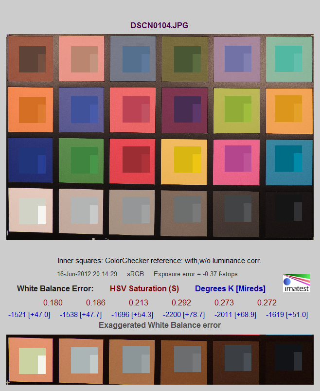 JPEG, шумоподавление «слабое» По ссылке — полноформатный файл с полными метаданными. Метаданные снимка: ЭФР 24 мм, ƒ/8,3, 1/6 c, ISO 100 По ссылке — полноформатный файл с полными метаданными. Метаданные снимка: ЭФР 24 мм, ƒ/8,3, 1/16 c, ISO 200 По ссылке — полноформатный файл с полными метаданными. Метаданные снимка: ЭФР 24 мм, ƒ/8,3, 1/25 c, ISO 400 По ссылке — полноформатный файл с полными метаданными. Метаданные снимка: ЭФР 24 мм, ƒ/8,3, 1/50 c, ISO 800 По ссылке — полноформатный файл с полными метаданными. Метаданные снимка: ЭФР 24 мм, ƒ/8,3, 1/100 c, ISO 1600 По ссылке — полноформатный файл с полными метаданными. Метаданные снимка: ЭФР 24 мм, ƒ/8,3, 1/200 c, ISO 3200 По ссылке — полноформатный файл с полными метаданными. Метаданные снимка: ЭФР 24 мм, ƒ/8,3, 1/400 c, ISO 6400 JPEG, шумоподавление «стандартное» По ссылке — полноформатный файл с полными метаданными. Метаданные снимка: ЭФР 24 мм, ƒ/8,3, 1/6 c, ISO 100 По ссылке — полноформатный файл с полными метаданными. Метаданные снимка: ЭФР 24 мм, ƒ/8,3, 1/13 c, ISO 200 По ссылке — полноформатный файл с полными метаданными. Метаданные снимка: ЭФР 24 мм, ƒ/8,3, 1/25 c, ISO 400 По ссылке — полноформатный файл с полными метаданными. Метаданные снимка: ЭФР 24 мм, ƒ/8,3, 1/50 c, ISO 800 По ссылке — полноформатный файл с полными метаданными. Метаданные снимка: ЭФР 24 мм, ƒ/8,3, 1/100 c, ISO 1600 По ссылке — полноформатный файл с полными метаданными. Метаданные снимка: ЭФР 24 мм, ƒ/8,3, 1/200 c, ISO 3200 По ссылке — полноформатный файл с полными метаданными. Метаданные снимка: ЭФР 24 мм, ƒ/8,3, 1/400 c, ISO 6400 JPEG, шумоподавление «сильное» По ссылке — полноформатный файл с полными метаданными. Метаданные снимка: ЭФР 24 мм, ƒ/8,3, 1/6 c, ISO 100 По ссылке — полноформатный файл с полными метаданными. Метаданные снимка: ЭФР 24 мм, ƒ/8,3, 1/13 c, ISO 200 По ссылке — полноформатный файл с полными метаданными. Метаданные снимка: ЭФР 24 мм, ƒ/8,3, 1/25 c, ISO 400 По ссылке — полноформатный файл с полными метаданными. Метаданные снимка: ЭФР 24 мм, ƒ/8,3, 1/50 c, ISO 800 По ссылке — полноформатный файл с полными метаданными. Метаданные снимка: ЭФР 24 мм, ƒ/8,3, 1/100 c, ISO 1600 По ссылке — полноформатный файл с полными метаданными. Метаданные снимка: ЭФР 24 мм, ƒ/8,3, 1/200 c, ISO 3200 По ссылке — полноформатный файл с полными метаданными. Метаданные снимка: ЭФР 24 мм, ƒ/8,3, 1/400 c, ISO 6400 ⇡#ВспышкаВ настройках вспышки предусмотрены режимы авто, заполняющая, подавление эффекта «красных глаз», медленная синхронизация, а также синхронизация по задней шторке. Кроме того, возможно введение компенсации вспышки в пределах от -2 до +2 EV, с шагом в треть ступени. Съёмка тестового шаблона велась с 50 см (минимальной рекомендуемой дистанции при работе вспышки) при автоматическом срабатывании вспышки Срабатывание вспышки в автоматическом режиме ⇡#Съёмка при недостаточной освещённостиДля оценки возможностей камеры при недостаточной освещённости была проведена съёмка тестового натюрморта при освещении двумя лампами накаливания, подключенными к сети через реостат, при помощи которого устанавливалось освещение 10, 20, 50, 100, 200 и 1000 люкс. Установка баланса белого производилась в автоматическом режиме. ⇡#Примеры снимков