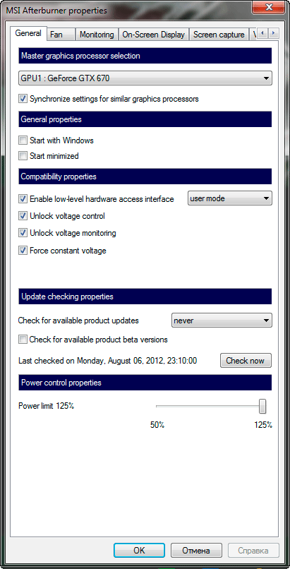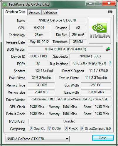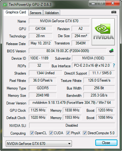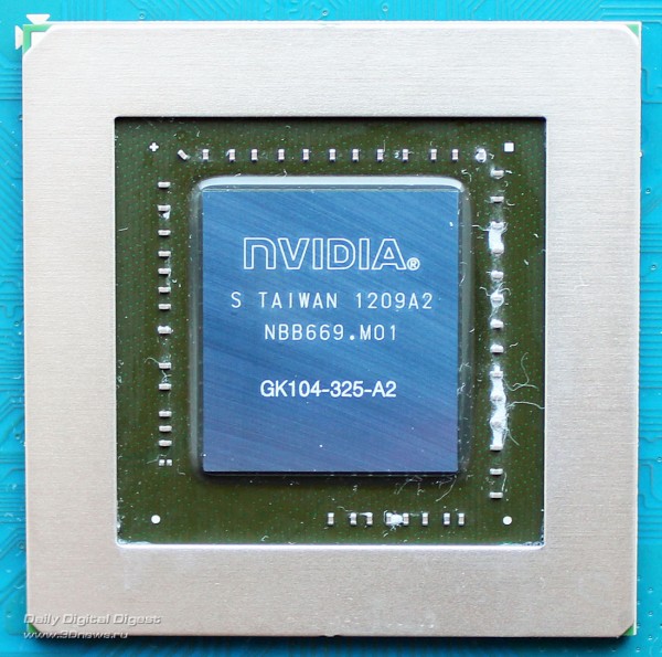 Видеокарта выпускается в Китае. Гарантийный срок — три года. ⇡#Особенности видеокартыВыглядит новая Inno3D iChill GeForce GTX 670 HerculeZ 3000 изумительно — сразу становится понятно, что перед нами продукт самого высокого класса: Массивная система охлаждения с тремя вентиляторами закрывает всю лицевую сторону видеокарты, а металлические накладки с фигурными винтами придают ей строгий, но в то же время притягательный вид. Приятно, что все интерфейсные разъёмы на видеокарте заботливо закрыты пластиковыми колпачками, что делают ещё далеко не все производители. Размеры видеокарты составляют 295х100х59 мм, то есть соседний к себе PCI-E слот на материнской плате она заблокирует, да и третий желательно оставить свободным для поступления воздушного потока к вентиляторам. Видеокарта оснащена выходами DVI-I и DVI-D (Dual-Link), HDMI и DisplayPort, совмещёнными с решёткой для частичного отвода нагретого воздуха за пределы корпуса системного блока: В этом плане всё стандартно, как и в плане оснащения двумя разъёмами для создания 2-, 3- и 4-way SLI-конфигураций и двумя разъёмами (шестиконтактным и восьмиконтактным) для подключения дополнительного питания, которые размещены на своих штатных для GeForce GTX 670 местах: В отличие от эталонной NVIDIA GeForce GTX 670, максимальное энергопотребление которой заявлено на отметке 170 ватт, а рекомендуемая мощность блока питания составляет 500 ватт, для iChill GeForce GTX 670 HerculeZ 3000 инженеры Inno3D заявили максимальную потребляемую мощность 204 ватта и необходимый блок питания на 550 ватт. И на то есть все основания, о которых мы вам сейчас расскажем. Печатная плата видеокарты выполнена на дизайне старшей GeForce GTX 680, причём с полноценным, а не урезанным питанием: А именно: здесь применена, можно сказать, усиленная схема 5+2+1 (GPU+mem+PLL). За управление питанием графического процессора отвечает PWM-контроллер Richtek RT8802A, установленный на отдельной плате на обратной стороне PCB: Кстати, на плате этого контроллера красуется имя одной известной ирландской рок-группы. Но что-то мы отвлеклись... Графический процессор GK104, выпущенный по 28-нм техпроцессу в Тайване на 9 неделе 2012 года (конец февраля — начало марта), относится к ревизии А2, как и все серийные Kepler: ![]() В 3D-режиме его частота составляет 1020 МГц плюс ещё 51 МГц за счет GeForce boost, что на 105 МГц, или 11,5% выше номинальной частоты GeForce GTX 670 (915 МГц). Вполне приличный заводской разгон, хотя и не рекордный для серийно выпускаемых GeForce GTX 670. Напомним, что в экономичном 2D-режиме частота снижается до 324 МГц. Кроме того, у нашего экземпляра видеокарты iChill GeForce GTX 670 HerculeZ 3000 графический процессор оказался со 100-процентным качеством (по данным GPU-Z последней версии): ![]() Как показывает практика, прямой зависимости между ASIC-качеством кристалла и оверклокерским потенциалом нет, но всё же принято считать, что чипы с более высоким процентом разгоняются лучше, что мы совсем скоро проверим. Два гигабайта видеопамяти стандарта GDDR5 размещены на лицевой стороне печатной платы в микросхемах FCBGA, выпущенных компанией Hynix Semiconductor Inc.: ![]() Маркировка чипов стандартная — H5GQ2H24AFR R0C, то есть точно такая же, как и у эталонных GeForce GTX 670. К сожалению, в Inno3D увеличили частоту памяти лишь на 200 МГц при итоговых 6212 МГц (+3,5%), хотя, как мы знаем, потенциал у этих микросхем отменный, а сравнительно узкая шина 256 бит иногда является своеобразным «бутылочным горлышком» для GeForce GTX 680 и GTX 670 в ресурсоём
