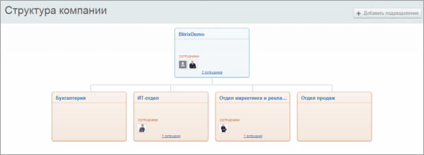 Для разделения по интересам на сервисе также существуют группы, в которые могут вступать пользователи, — например, «отдых», «тренинги продаж» или «технологии». В группах представлены те же возможности, что и в меню «Мои инструменты», — «живая лента», календарь, фотографии и другие, но, кроме того, есть раздел Wiki, с помощью которого можно сформировать базу знаний по тому или другому вопросу. Важную роль играет раздел CRM. Он позволяет вести учет контактов, компаний, сделок, лидов и товаров, отслеживать события, воронку продаж и конструировать отчеты. В настройках можно выполнить интеграцию с почтой и интернет-магазинами. А в разделе «Компания» приглашаются на портал новые сотрудники — для этого достаточно отправить им письмо на электронную почту. Каждому сотруднику можно присвоить должность и выбрать подразделение, к которому он будет относиться. Подразделения добавляются на странице «Структура компании», где отображается древовидная схема организации — что и к чему относится. Каждое подразделение имеет своего руководителя и — если это необходимо — дочерние подразделения.