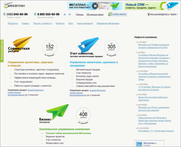 «Мегаплан» появился на рынке SaaS-сервисов значительно раньше, чем «Битрикс 24», — в 2008 году, при этом разработка началась еще за два года до этого для внутреннего использования в интернет-магазине «Ютинет». С тех пор сервис значительно вырос и набрал более 2 500 клиентов, среди которых есть достаточно серьезные организации — такие как Akado, RuTube, Avon, «Первый канал» и другие. А в марте 2012 года пакет из 51% акций «Мегаплана» был куплен компанией «1С», которая теперь владеет обоими сервисами.