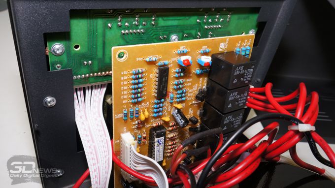 Монтаж и пайка выполнены на достойном уровне, силовые провода и кабели достаточно мощного сечения для устройства этого класса, все шлейфы и навесные элементы закреплены и пропаяны должным образом.