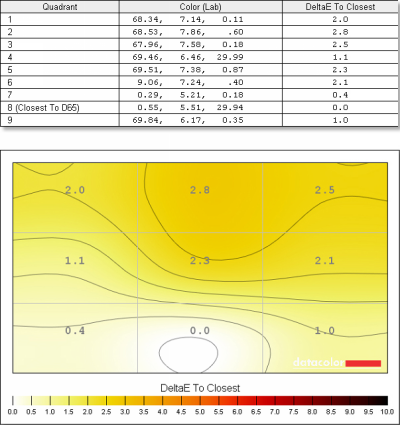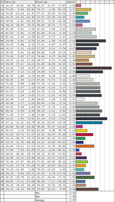⇡# Тестирование: дисплейВ протестированной конфигурации Lenovo ThinkPad Edge E530 была использована матрица AU Optronics B156XTN с разрешением 1366х768 точек и матовым покрытием. Матрица не самая плохая, но и до лучших экземпляров ей далеко. Светимость белого поля при максимальном уровне подсветки составляет 184,4 кд/м2. Светимость чёрного поля — 2,17 кд/м2, что даёт нам статическую контрастность на уровне 85:1. Не то чтобы хорошо, но бывает и еще меньше. Измерения равномерности подсветки проводились после калибровки дисплея для двух уровней яркости — максимальной и половинной (100% и 50%). ![]() Равномерность яркости при уровне подсветки 100% и 50% Цветовой охват дисплея ThinkPad Edge E530 несколько больше, чем у большинства экранов недорогих ноутбуков: около 78% от sRGB — тогда как чаще всего встречаются матрицы с охватом 60–65%. График цветового охвата в системе Lab. Зеленая линия — цветовой охват дисплея Lenovo ThinkPad Edge E530; белая — стандартное цветовое пространство sRGB ![]() Гамма-кривые (чёрные графики), полученные до и после калибровки дисплея, целевая гамма 2,2 (светло-синий график) и коррекция для каждого цвета (красный, синий, зелёный) Баланс белого весьма далек от идеала: цветовая температура составляет около 8 000 К непосредственно для белого и равномерно растет аж до 41 000 К ближе к черному. Прописью: до сорока одной тысячи. ![]() ![]() Равномерность цветопередачи при уровне подсветки 100% и 50% Порадовать точной цветопередачей данный дисплей не может. Для большинства из использованных в тесте 48 оттенков отклонение превышает граничное значение 3, до которого человеческий глаз совершенно неспособен уловить разницу. ![]() ⇡# Тестирование: звуковая подсистемаОт динамиков практически любого ноутбука не стоит ожидать глубокого мелодичного баса и звонкого ВЧ-диапазона. Даже модели, украшенные логотипами именитых производителей Hi-Fi-техники по большому счету предлагают качество звучания встроенных динамиков, достаточное разве что для просмотра мелодрам, где звуковой дорожке уделяется не так много внимания. Что уж говорить про простую рабочую лошадку? Звучание плоское, немного приглушённое, будто бы ноутбук спрятан в кладовой. Низких частот вообще не слышно, высокие немного проклёвываются, но не более того. Впрочем, есть и хорошие новости: шумов, треска или иных дефектов при установке максимального уровня громкости не наблюдается, да и запас громкости приличный. В целом для «технического» звука динамиков хватит. Звуковой тракт ноутбука построен на базе Conexant Cx20671. Решения данного производителя чаще других встречаются именно в ноутбуках Lenovo. Нередко они показывают весьма неплохие результаты, и Lenovo ThinkPad Edge E530 не стал исключением — итоговая оценка «отлично» говорит сама за себя. Тестирование аудиотракта проводилось при помощи вышеупомянутого тестового пакета RMAA и звукового интерфейса Creative E-MU 0202 USB. Режим работы: 16-бит, 44 кГц.