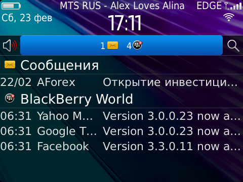 ⇡#Программное обеспечение![]() Панель уведомлений Смартфон работает на операционной системе BlackBerry OS 7.0. Полноценный обзор платформы занял бы целую статью, поэтому мы остановимся только на ключевых моментах. Изменений по сравнению с предшествующей версией немного: «семерка» — это исправленная и более стабильная версия «шестерки». Тем не менее «пилить» еще есть куда — гаджет в процессе повседневной работы частенько подвисает. Задуматься устройство может и при наборе текста, и при веб-серфинге, и даже при банальном перемещении по меню. Причем за время тестирования нам встречались и такие глюки, которые лечились только вытаскиванием батарейки. При выполнении какого-либо одного процесса, например при скачивании приложения из магазина BlackBerry World, устройство лучше отложить в сторонку и не трогать — с многозадачностью у гаджета беда. ![]() Предустановленные приложения С другой стороны, система старается быть дружественной к пользователю: при настройке почты предлагается синхронизация контактов и событий календаря, в браузере появилась возможность поиска из адресной строки. Основным достоинством платформы является огромное количество предустановленных приложений — в смартфоне изначально есть всё, что нужно практически кому угодно: от клиентов Twitter и Facebook✴ и до программы для работы с «офисными» документами Documents To Go или браузера дополненной реальности Wikitude. ![]() Главная страница магазина приложений BlackBerry World Видимо, именно большим количеством предустановленных программ BlackBerry пытается компенсировать главный, самый большой недостаток своих смартфонов — магазин приложений BlackBerry World. Он совершенно не в состоянии конкурировать с такими гигантами, как Play Market или App Store. Количество интересных или хотя бы стоящих внимания приложений в нем сведено к минимуму, а стоимость каждого из них достигает $3–5. Разумеется, встречаются и исключения, но они крайне редки. Именно скудность ассортимента BlackBerry World, который совершенно не спешит «раскачиваться», — основная беда «ежевичной» компании. В остальном BlackBerry Bold 9790 на седьмой версии одноименной операционной системы вполне пригоден для работы в российских реалиях. ⇡#ЗаключениеПомню, когда я первый раз пытался подружиться со смартфоном BlackBerry, мне пришлось в срочном порядке докупать ему в пару планшет, потому что у гаджета хромал доступ в Интернет, функциональность была строго ограничена, а Wi-Fi — вовсе заблокирован. Кончилось все продажей «ежевики» и покупкой более привычного «ведроида». За неделю тесного общения с Bold 9790 носить с собой планшет необходимости не возникало (он был убран в шкаф для чистоты эксперимента) — смартфон вполне пригоден для использования в России и, что самое главное, не имеет никаких физических ограничений. Тем, для кого в телефоне приоритетной является связь, гаджет наверняка придется по душе. Другое дело, что, кроме богатых коммуникационных возможностей и классной qwerty-клавиатуры, BlackBerry Bold 9790 похвастаться нечем. Выдать фирменную операционную систему за достоинство пока что не получается — уж слишком, буквально-таки непозволительно бедное у нее окружение. Поскольку мобильный телефон используют по своему прямому назначению единицы (старички, осваивающие наши монохромные Nokia и Samsung, не в счет), спрос на гаджеты BlackBerry небольшой — в Японии, например, смартфоны канадско