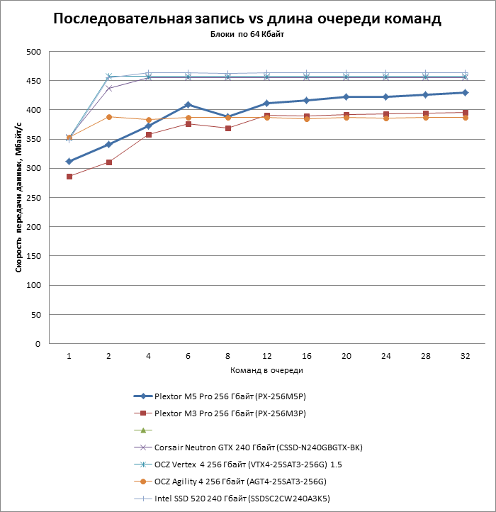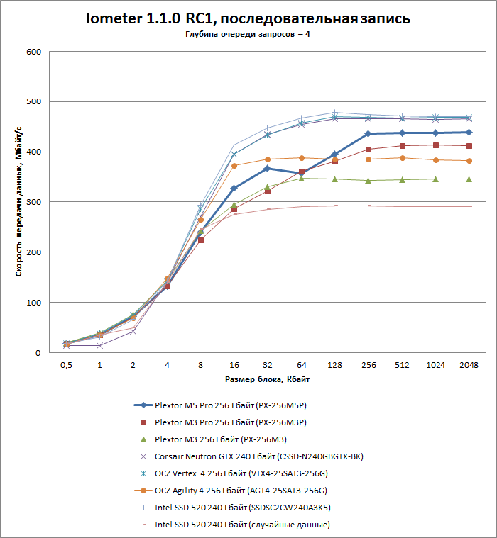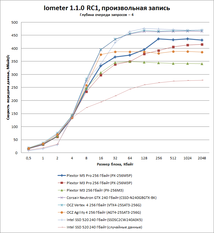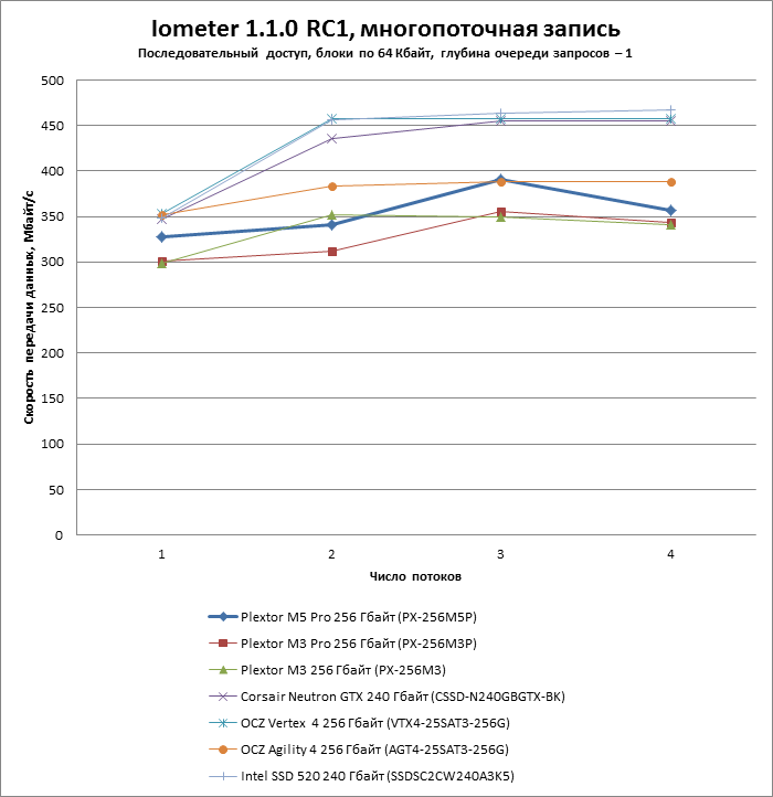 | Макс. устойчивая скорость последовательной записи, Мбайт/с | 330 | 460 | 470 |