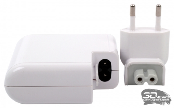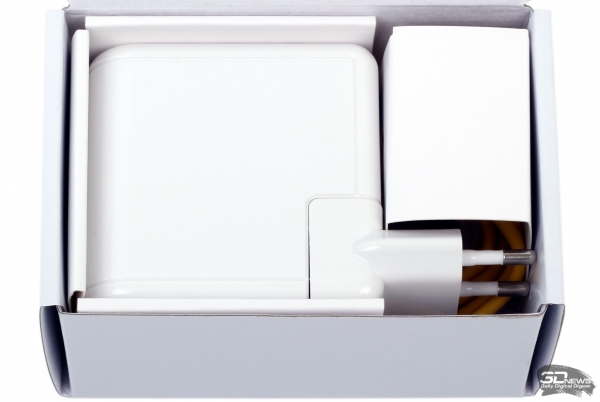 Мы при первом вскрытии упаковки✴ даже немного опешили — уж очень сильно роутер похож на блок питания для ноутбуков Apple. Разве что корпус закруглён с одного из краёв. А вот конструкция съёмной вилки ну просто один в один, так что проблем с покупкой дополнительных штекеров нет. В российской рознице в комплекте поставляется одна европейская вилка, а в других странах, видимо, будут иные. Кстати, о комплектации — к роутеру прилагается бумажная инструкция, диск с ПО и патч-корд.