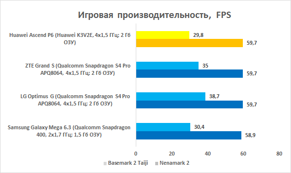 Будущим владельцам смартфона не потребуется ничего докупать к нему — всё поставляется вместе с Huawei Ascend P6, что, несомненно, хорошо. ⇡#ДисплейВ Huawei Ascend P6 использован 4,7-дюймовый экран с разрешением 720x1280 точек. Плотность пикселей превышает 312 точек на дюйм — вполне себе «Ретина». У пятидюймового флагманского Ascend D2, к слову, Full HD-дисплей и более четырехсот сорока точек на дюйм — вот она, практически незримая разница между P и D. Так или иначе для такой диагонали разрешение у дисплея Ascend P6 отличное. Больше — не нужно, только батарейку зазря будет кушать. Huawei Ascend P6 — результаты теста AnTuTu MultiTouch Test Матрица основана на технологии IPS, благодаря чему у дисплея отличные углы обзора, а цвета остаются правдоподобными, даже если отвести взгляд от нормали. Устройство быстро и точно распознает прикосновения и жесты и умеет понимать до десяти одновременных касаний экрана. Дисплей смартфона прикрыт защитным стеклом Gorilla Glass, которое надёжно защищает его от появления царапин и других повреждений. ![]() У дисплея Huawei Ascend P6 очень большой запас яркости. Светимость белого поля варьируется в пределах от 32 до 470 кд/м2 — при минимальном и максимальном уровнях подсветки соответственно. В силу того, что экран оснащён олеофобным покрытием, благодаря которому он не так быстро пачкается, а также поляризационной прослойкой, информация на нём остаётся читаемой даже на улице под ярким солнцем. Одновременно с этим дисплей не насилует глаза в кромешной темноте — рамки яркости у него очень широкие. ![]() Высокая яркость экрана в обязательном порядке сопряжена с увеличением светимости черного поля, которая в данном случае достигает 0,54 кд/м2. Из-за этого на максимальном уровне подсветки чёрному цвету несколько не хватает глубины. Не критично, но заметно. Итого контрастность (измеренная простым способом — на полностью залитых белым и черным цветом экранах) устанавливается на отметке 865:1 — в целом хорошо для IPS, но могло бы быть и больше. ![]() По основным показателям дисплей Huawei Ascend P6 вполне неплох. Однако если ознакомиться с ним подробнее, становится понятно, что откалиброван он не лучшим образом. Цветовая температура десяти оттенков серого ощутимо выше нормы — в среднем она составляет около 8250 К против эталонных 6500 К. Это значит, что цвета на дисплее выглядят несколько «холоднее» должного. Для тех, кого это особо сильно смущает, в соответствующем разделе настроек предусмотрена функция ручной корректировки цветовой температуры. Huawei Ascend P6 — регулировка цветовой температуры Гамма-кривая градаций серого практически совпадает с эталоном. Это значит, что изображение свободно от переэкспонирования и «провалов» в тенях на любом уровне подсветки. С гамма-кривыми цветовых составляющих дела обстоят гораздо хуже. Особенно это касается синей составляющей — она пересвечена наиболее сильно, отсюда и «холодные» тона. Зеленый и красный тоже перенасыщены, однако такие отклонения от эталонной кривой простительны. Цветовой охват дисплея практически совпадает с пространством sRGB — он совсем незначительно уже. В целом мультимедийные файлы выглядят на экране Huawei Ascend P6 вполне хорошо — насыщенно и детально, без видимых отклонений, хотя настраивать экран следовало бы более скрупулёзно — недочёты присутствуют. Huawei Ascend P6 — цветовой охват экрана смартфона (чёрный треугольник) в сравнении с