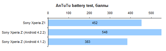 Если сравнивать с Xperia Z, то при серьезной нагрузке на процессор Xperia Z1 разряжается заметно быстрее. Хотя тут тоже как посмотреть — с предыдущей версией прошивки «зетка» жила гораздо меньше, а ведь и для Xperia Z1 появится более совершенная версия ОС.