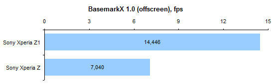 Впрочем, все еще есть пара графических тестов, способных заставить задуматься даже Adreno 330: это BasemarkX и GFXBench. В обеих дисциплинах уровень FPS пока ниже даже условно играбельных 30 кадров в секунду. Впрочем, прогресс и тут налицо: производительность прошлогоднего чемпиона Qualcomm, Adreno 320, в этих пакетах в полтора-два раза меньше.