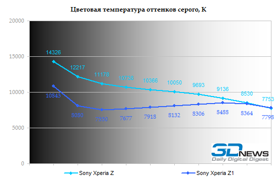 А вот гаммы у дисплея Xperia Z1 настроены получше, чем у дисплея Xperia Z. В оригинальной «зетке» картинка пересвечивается заметно сильнее — особенно достается полутонам. Поэтому на экране Xperia Z одни и те же изображения выглядят более блеклыми, чем на экране Z1.