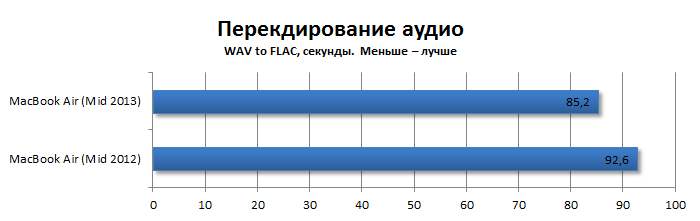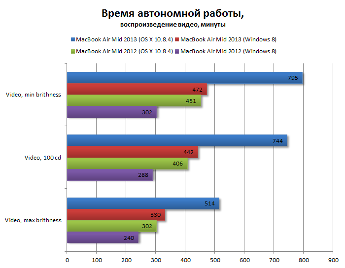 «Воздушные» макбуки 2013 года получились противоречивыми из-за нового процессора. Как известно, одна из главных «фишек» архитектуры Intel Haswell — пониженное энергопотребление. Снизить его можно разными путями: кроме внедрения новой архитектуры процессора можно просто понизить тактовую частоту ЦП, тем самым сделав его экономичнее. Разумеется, компания Intel не могла не воспользоваться этой возможностью и в её линейке низковольтных CPU есть такой экземпляр. Тактовая частота Intel Core i5-4250U на 300 МГц меньше, чем у его аналога с архитектурой Ivy Bridge (Intel Core i5-3427U). Либо по злой иронии судьбы, либо по тонкому расчёту именно этот процессор используется в новых MacBook Air. Конечно, в продаже можно найти модификации с процессором Intel Core i7-4650U, максимальная частота которого на 700 МГц выше, чем у i5-4250U. Но и стоить такой макбук будет гораздо дороже — особенно в России. Вместе с новым процессором появилась новая интегрированная графика Intel HD 5000 и набор микросхем Intel Lynx Point-LP. К счастью, в Intel не стали урезать частоту графики вслед за тактовой частотой процессора. Процессор Apple MacBook AIR 13 дюймов (Mid 2013) Максимальная частота графической системы составляет 1 ГГц, в то время как у процессоров семейства i7 тактовая частота графики HD 5000 составляет 1,1 ГГц. Учитывая, что встроенная графика никогда не была сильной стороной процессоров Intel, по поводу немного увеличенной частоты графической подсистемы в процессорах серии Core i7 можно не переживать. Следующее приятное новшество — это поддержка стандарта беспроводной связи IEEE 802.11ac. Напомним, что этот стандарт предназначен для сетей с частотой 5 ГГц, а максимальная скорость передачи данных может превысить 1 Гбит/c. Конечно, речь идёт об идеальных лабораторных условиях. Что будет на самом деле — сказать трудно, потому что итоговая скорость доступа будет зависеть от расстояния между ноутбуком и точкой доступа, а также от количества препятствий между ними и общей загруженности эфира. В принципе, ничего по-настоящему инновационного в поддержке 802.11ac нет — о роутерах и USB-адаптерах, поддерживающих этот стандарт, мы уже писали ранее. Broadcomm BCM94360CS2 — Wi-Fi-модуль нового MacBook Air Новый процессор и быстрый Wi-Fi — это, безусловно, хорошо. Но мы считаем, что самой интересной «фишкой» нового макбука следует считать SSD-накопитель, подключённый через интерфейс PCIe вместо SATA III. Как и Wi-Fi 802.11ac, подключенный к шине PCIe твердотельный накопитель — тоже не совсем новинка. Такие SSD могут оказаться гораздо быстрее большинства своих аналогов, ведь их не будет сдерживать пропускная способность SATA III. К сожалению, раньше желание получить самый быстрый SSD исчезало после нескольких безуспешных попыток установить ОС на такой накопитель. Напомним, что на момент выхода этой статьи какого-либо единственного, утверждённого и принятого всей индустрией стандарта или драйвера для загрузки ОС c накопителя, подключенного непосредственно к шине PCIe, нет. Даже несмотря на то, что разговоры о SATA Express идут уже давно, материнских плат с поддержкой таких интерфейсов на рынке не видно. Поэтому разработчикам накопителей формата PCIe приходится самостоятельно решать не самую простую задачу: как научить этот девайс быть загрузочным диском на большинстве материнских плат. Старый (сверху) и новый (снизу) твердотельные накопители MacBook AIR Компании Apple в этом плане живётся проще многих. Матерински