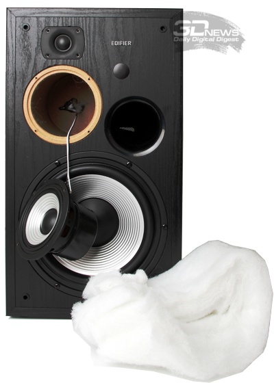 По аналогии с моделью Edifier R2700, в новой системе Studio 8 установлен трансформатор блока питания на ш-образных пластинах, без всяких фокус-покусов с ВЧ-преобразователями – чистая аудиофильская классика. Разница лишь в том, что 20-вольтная вторичная обмотка у новой модели R2800 рассчитана на ток нагрузки 4,5 А против 3,5 А у модели R2700: как-никак выходная мощность у новой системы всё же повыше. Обратите также внимание на огромное количество демпфирующего материала, щедро расположенного внутри корпуса колонок.