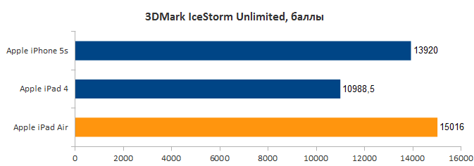 В iPad Air, как и во всех современных устройствах Apple, используется nano-SIM. Занятно, что к новому «Айпаду» прилагается не литая, а проволочная «айскрепка», как к iPhone 5c В результате в ассортименте Apple есть всего одна LTE-модель iPad Air – A1475, зато работает она сразу во всех LTE-сетях на свете, за исключением китайских TDD-LTE. Это удобно: во-первых, вы не останетесь без связи, куда бы вы ни поехали (ну, кроме Китая – впрочем, тамошние сети все еще не запущены), во-вторых (счастье для русского человека) «айпады» теперь можно везти практически из любой страны — и они будут работать в российских сетях LTE. Однажды. Потому что сейчас, насколько нам известно, — по всяческим разным причинам — они с LTE не работают, как и айфоны. Это, правда, нам еще предстоит проверить. ⇡#ПроизводительностьКак работает Apple A7 – мы уже видели на примере iPhone 5s. Впечатляюще работает, стоит признать. Чуть оптимизированный и разогнанный A7, как выясняется, смотрится и того лучше. По крайней мере в 3DMark IceStorm Extreme результат у iPad Air почти в 1,5 раза выше, чем у iPhone 5s, а про iPad 4 и говорить не приходится. Да-да, вот этот низкий результат — это показатель того самого iPad 4, мощностью графики которого еще полгода назад пугали производителей планшетов — дескать, не дотянетесь. ![]() В IceStorm Unlimited результат не такой выразительный, но ускоренный процессор с лучшим охлаждением (относительно iPhone 5s) плюс улучшенная графика (по сравнению с iPad 4) все еще дают о себе знать. ![]() В Basemark X наш подопытный повел себя странно — он просто не запускается в тесте Offscreen, поэтому у нас есть только результаты в родном для «айпада» разрешении 2048х1536. Само собой, результаты неутешительные: Basemark X – очень тяжелый тест, с нормальной скоростью он не работает даже на Full HD-дисплеях, так что про «ретину» и говорить нечего. Конечно, у iPad Air получается лучше, чем у iPad 4, но все равно очень бледно. Впрочем, таких тяжелых мобильных игр не бывает, так что в практическом смысле грустить особенно не о чем. ![]() То, насколько сложно мобильной графике работать с «ретиной», наглядно иллюстрирует GFX Benchmark. В простенькой сценке Egypt HD в обоих разрешениях разница между старым и новым «айпадами» составляет 10 FPS, но при переходе от Full HD к 2048х1536 показатели планшетов проседают еще на десятку с небольшим. И если в Full HD результаты однозначно хорошие, то при запуске в 2048х1536 старому iPad уже откровенно тяжело. ![]() ![]() В более тяжелой сцене T-Rex HD FPS не доходит до приемлемого уровня ни на одном из планшетов. Хоть сколько-то приличную цифру показывает только Air и только в разрешении Full HD (то есть в режиме Offscreen). T-Rex (как и Basemark X) – это плюс-минус уровень детализации и, соответственно, запросов тех игр, которые сейчас находятся в разработке и выйдут через год-два. Соответственно, играть в них в родном для «айпада» разрешении и в максимальном качестве будет в принципе невозможно. Даже на новом, мощном iPad Air – а на iPad 4 и старше все выглядит совсем грустно. ![]() ![]() ⇡#КамераФормально характеристики камеры нового «Айпада» остались теми же, что и у предыдущего: совпадают они до буквы и знака препинания. Однако на самом деле модуль камеры стал совсем другим – просто по той причине, что изменилась толщина корпуса. Для старого модуля места уже не хватило, так что инженерам пришлось встраивать новый. В итоге разница между снимками все же есть – и она не так мала, как можно было подумать. Собственно, об