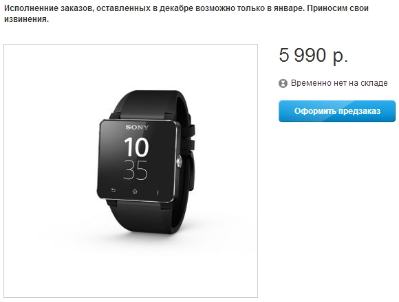 К слову, о приобретении. Предыдущие два поколения умных часов Sony были совсем не ах какими популярными. Так что японцы, в этот раз также ожидая изрядного скепсиса покупателей, произвели недостаточно большую партию SmartWatch 2. Однако сейчас, в отличие от прошлых лет, тема умных часов находится в центре внимания, так что покупают их значительно лучше, чем рассчитывали в Sony. В том числе и в российском представительстве: все поставленные на наш рынок SmartWatch 2 уже давно размели, так что на сайте фирменного онлайн-магазина не первый месяц красуются надписи «Временно нет на складе».