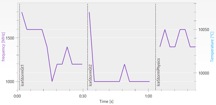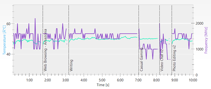 Автоматика использует стратегию race-to-idle, когда более выгодно быстро выполнить задачу APU на повышенной частоте и затем бездействовать, вместо того чтобы растянуть процесс на низкой частоте. При определении мощности берется в расчет не только сам APU, но и другие компоненты устройства, которые также вносят заметный вклад в общее энергопотребление системы при длительной нагрузке.