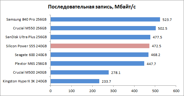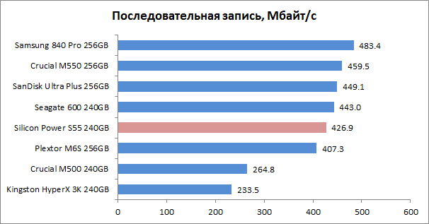 | Макс. устойчивая скорость последовательной записи | 465 Мбайт/с | 475 Мбайт/с | 480 Мбайт/с |