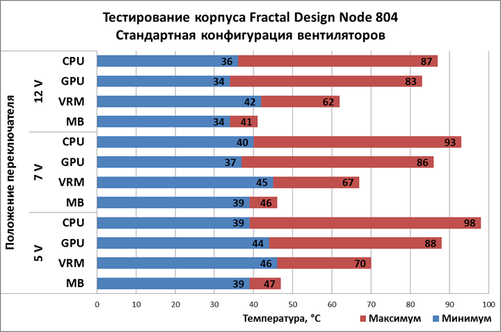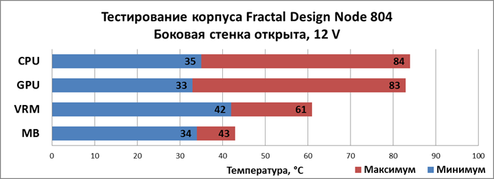 Полная скорость вращения вентиляторов исправляет ситуацию практически для всех компонентов.