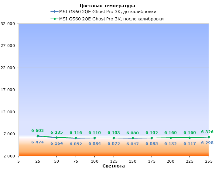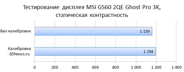 Технические характеристики «Призрака Про», как и его внешний вид, практически не изменились. Сердцем ноутбука является процессор Intel Core i7-4710HQ с частотой 2,5 ГГц (до 3,5 ГГц в режиме Turbo Boost), кешем L3 размером 6 Мбайт и теплопакетом 47 Вт. Объём оперативной памяти составляет 16 Гбайт DDR3L-1600, причём замена модулей силами пользователя не предусмотрена. Чтобы добраться до памяти, придётся разобрать ноутбук практически до винтика и, что гораздо неприятнее, вскрыть гарантийную пломбу на его днище, а это приведёт к потере гарантии. Теперь расскажем подробнее про графику. В роли дискретного видеоадаптера выступает уже упомянутая выше видеокарта NVIDIA GeForce GTX 970M — на момент выхода статьи это второй по производительности мобильный GPU от NVIDIA. Видеокарта построена на чипе GM204, выполненном по техпроцессу 28 нм и основанном на архитектуре Maxwell. В видеоядре находятся 10 потоковых мультипроцессоров (SMM), 1280 унифицированных шейдеров, 80 текстурных блоков и 48 блоков растровых операций (ROP). Базовая частота GTX 970M, согласно спецификациям NVIDIA, составляет 924 МГц, но деле она может быть выше благодаря NVIDIA GPU Boost 2. Кроме того, максимальная частота графического ядра будет зависеть от эффективности системы охлаждения и тех настроек, которые вносит в BIOS видеокарты производитель ноутбука. Что же касается процессорного видеоядра Intel, то оно на месте — в MSI не стали его отключать. Дисковая подсистема по-прежнему состоит из массива RAID 0, включающего два быстрых M.2 SSD объёмом 128 Гбайт каждый и жёсткого диска объёмом 1 Тбайт. В MSI такая конфигурация дисковой подсистемы называется MSI Super RAID, хотя жёсткий диск не входит в массив. Батарея у ноутбука встроенная, её ёмкость составляет 52,89 Вт·ч (4640 мА·ч, 11,4 В), а состоит она из 6 ячеек — типичный аккумулятор «пятнашки». Что касается блока питания, то его мощность составляет 150 Вт (19,5 В, 7,7 А). Стоит MSI GS60 2QE Ghost Pro 3K под стать своим характеристикам и цвету корпуса, то есть много. Очень много. На момент публикации этой стати средняя цена рассматриваемой нами модификации ноутбука составляет 93 тысячи рублей. С одной стороны, это очень большая сумма, а с другой — адекватная: мощные процессор и видеокарта, IPS-экран с разрешением 2880х1620 пикселей никогда не были дешёвыми. Особенно если все это упаковано в корпус толщиной 23,8 мм в самой толстой части и весит меньше 2 кг. ⇡#Внутреннее устройствоГерой нашей статьи, в отличие от многих других игровых ноутбуков MSI, не предназначен для разборки или апгрейда. На это намекает гарантийная пломба, закрывающая собой один из винтов, который удерживает днище. Кроме того, на днище ноутбука приклеена чёрная ворсистая ткань — для тех, кто любит класть ноутбук себе на колени. Из-за нее лэптоп не будет съезжать с коленей, да и греть их он должен не так сильно. Если снять днище ноутбука, то из съёмных элементов под ним можно увидеть только батарею и жёсткий диск. Оперативная память, а также твердотельные накопители формата M.2 находятся на обратной стороне материнской платы. В общем, как показала практика, лезть «под капот» «Призрака Про» не стоит. Во-первых, из-за вскрытия потеряется двухлетняя гарантия производителя, а во-вторых, добраться до оперативной памяти и SSD будет непросто даже подготовленному пользователю. ⇡#Тестирование дисплеяНаш подопытный вовсе не случайно получил такое странное и длинное имя собственное: Ghost Pro 3K. П
