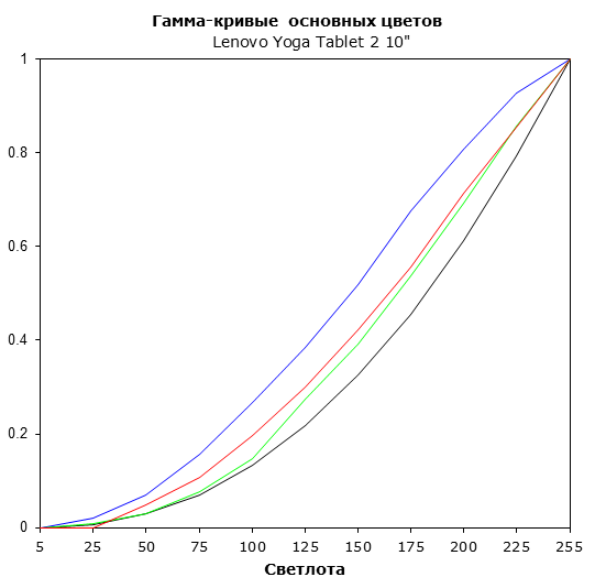 В первое поколение десятидюймовых планшетов Yoga Tablet устанавливали весьма бюджетные матрицы с разрешением 1280x800 точек, что мучительно мало для полноразмерной «таблетки». К тому же они и настроены были неважно — цветовой охват был значительно уже эталонного пространства sRGB, а гаммы имели совершенно противоестественную форму — в результате цвета получались блеклыми и пересвеченными. А углы обзора у экрана, несмотря на тип матрицы (IPS), были недостаточно широкими. В общем, хорошим тот дисплей назвать было нельзя.