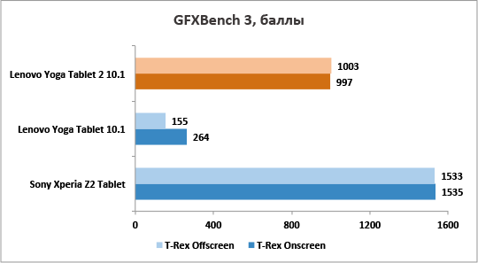 Если судить по проведенным тестам, новая платформа Intel Atom Z3745 не может конкурировать с топовыми решениями общепризнанного лидера индустрии — Qualcomm. Например, один из лучших планшетов уходящего года — Sony Xperia Z2 Tablet, который работает на чипе Snapdragon 801, продемонстрировал лучшие результаты в игровых тестах. По мощности Atom Z3745 можно сопоставить, говоря грубо и крайне примерно, с Qualcomm Snapdragon 600 — решением сравнительно мощным, но далеко не самым производительным. В то же время нельзя не обратить внимание на то, насколько подросла мощность Yoga Tablet 10 в сравнении с показателями первого поколения. Планшет хорошо подходит для веб-серфинга и мультимедиа, при желании на нем можно даже поиграть, если не выставлять на максимум уровень детализации и проработки текстур.