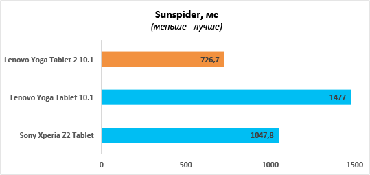 Что тут сказать, при выполнении бытовых задач устройство работает очень гладко. Анимация операционной системы, переключение между приложениями, веб-серфинг — все это происходит на Yoga Tablet 2 без подтормаживаний. Первой «Йоге» о таком можно было только мечтать. Очень редко гаджет позволяет себе «дернуть» изображение, но это происходит в исключительных случаях. Устройство без проблем держит в памяти множество открытых вкладок и приложений. С повседневными задачами гаджет справляется хорошо.