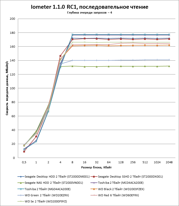 Макс. устойчивая скорость последовательного чтения, Мбайт/с |