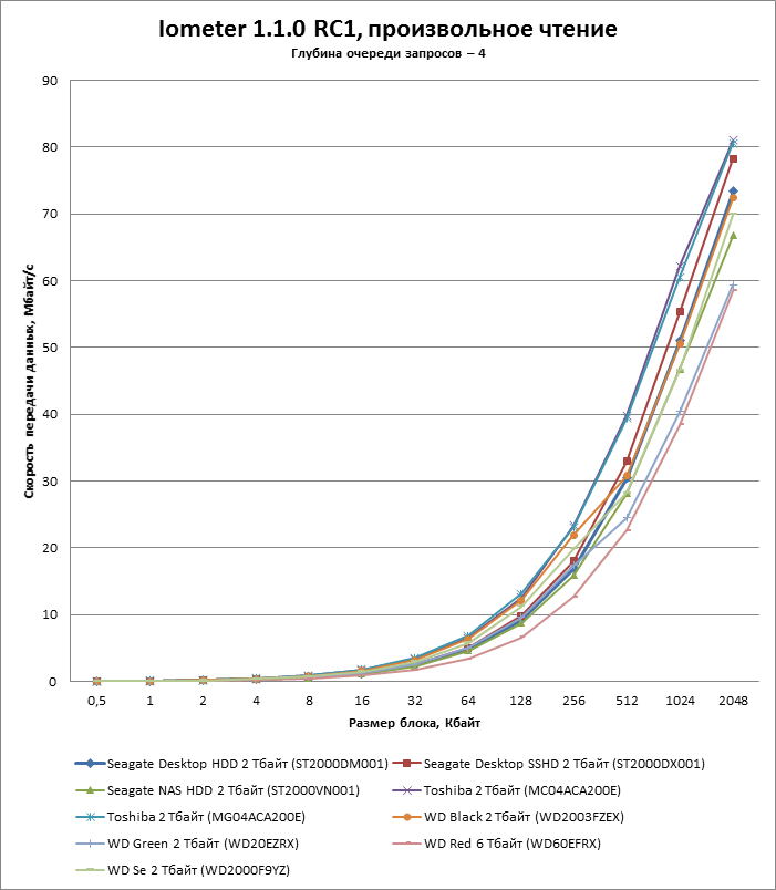 Объем и скорость передачи данных в бенчмарках указываются в бинарных единицах (1 Кбайт = 1024 байт).