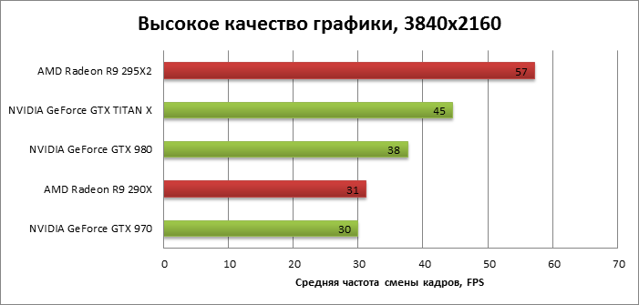 Без полноэкранного сглаживания и некоторых дополнительных опций, пожирающих производительность и объем VRAM, владельцы GeForce GTX 770 и AMD Radeon R9 280X могут рассчитывать на комфортную игру в режиме 1920 × 1080. Для 2560 × 1440 желательно иметь что-то не хуже GTX 780 Ti или Radeon R9 290X. А разрешение 3840 × 2160 вновь требует TITAN X либо Radeon R9 295X2.