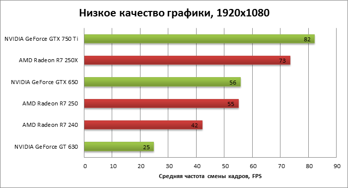 При низких настройках графики GTA V выглядит неказисто, зато доступна владельцам весьма слабых компьютеров. Даже GeForce GTX 740 или Radeon R7 240 позволят поиграть при разрешении 1920 × 1080 с приемлемой частотой смены кадров, а на GTX 650 либо R7 250 игра уже идет довольно плавно.