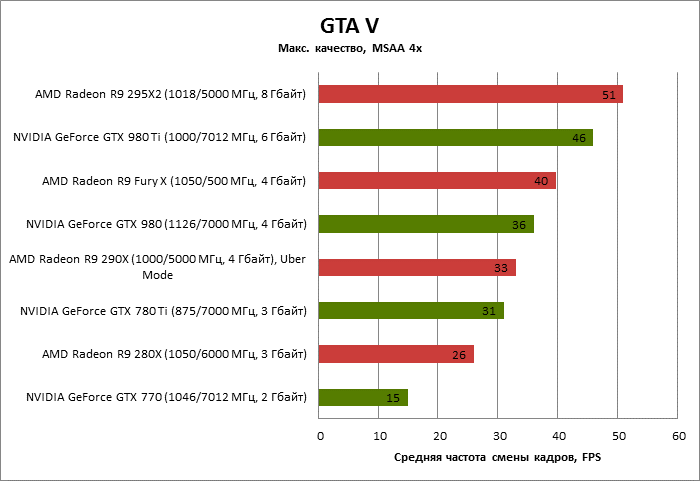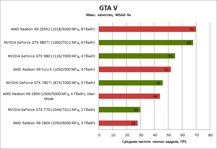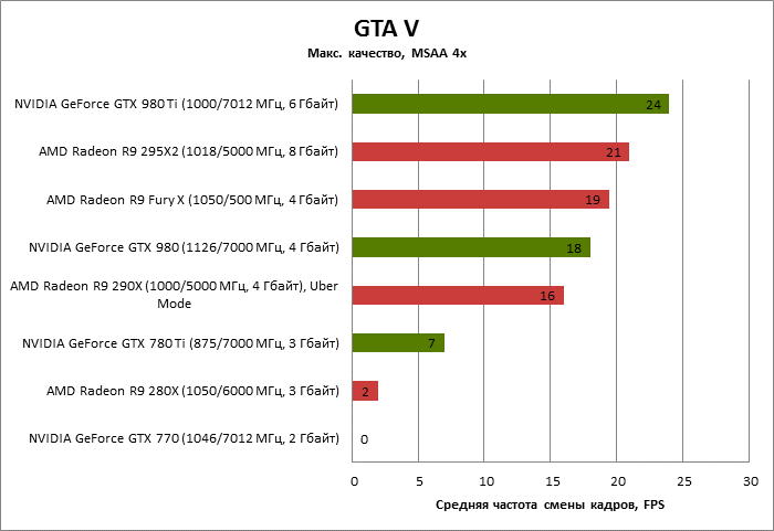 | GTA V, встроенный бенчмарк | Макс. качество | MSAA 4x + FXAA | |