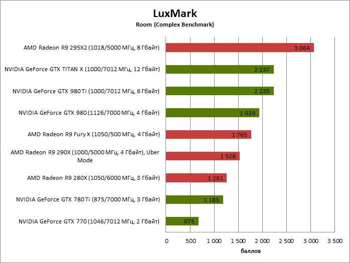 Radeon R9 Fury X улучшил позиции AMD в задаче трассировки лучей, однако не в силах сместить NVIDIA с пьедестала, который она заняла благодаря GeForce GTX 980, а затем и GTX 980 Ti вместе с родственным TITAN X.