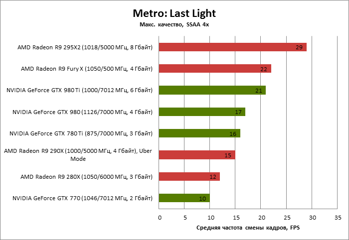 | Metro: Last Light, встроенный бенчмарк | Макс. качество | SSAA 4x | |
